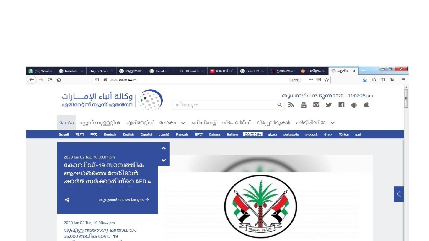 എമിറേറ്റസ് ന്യൂസ് ഏജന്സിയില് ലോക ഭാഷകള്ക്കൊപ്പം മലയാളവും