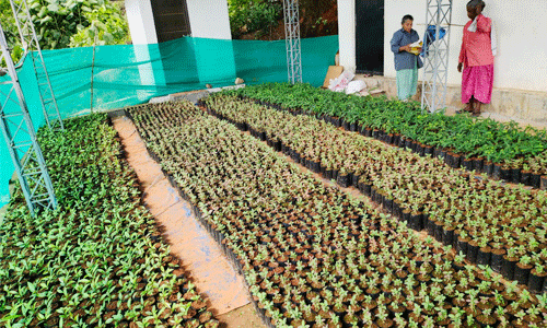 പത്തോളം തൊഴിലുറപ്പ് തൊഴിലാളികള്ക്കായി 400 തൊഴില്ദിനങ്ങള് നല്കിയാണ് വൃക്ഷതൈകള് തയ്യാറാക്കിയത്. മാതളം, നീര്മരുത്, പേര, നെല്ലി, ജാതി തുടങ്ങി അഞ്ച് തൈകളാണ് വിതരണം ചെയ്യുന്നത്. സോഷ്യല് ഫോറസ്ട്രി വകുപ്പിന്റെ സഹകരണത്തോടെയാണ് നഴ്സറി വൃക്ഷതൈ ഒരുക്കിയത്.