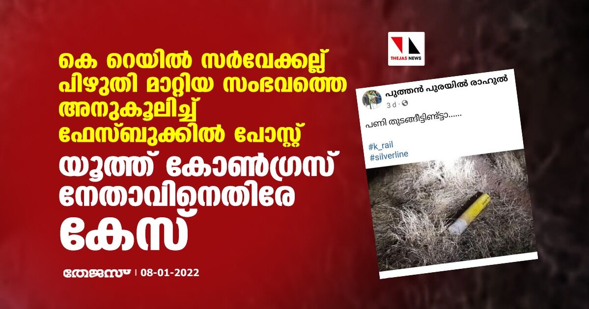 കെ റെയില് സര്വേക്കല്ല് പിഴുതി മാറ്റിയ സംഭവത്തെ അനുകൂലിച്ച് ഫേസ്ബുക്ക് പോസ്റ്റ്; യൂത്ത് കോണ്ഗ്രസ് നേതാവിനെതിരേ കേസ്