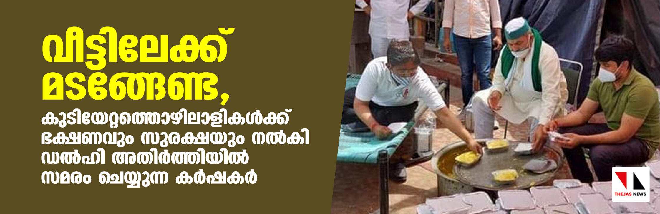 വീട്ടിലേക്ക് മടങ്ങേണ്ട, കുടിയേറ്റത്തൊഴിലാളികള്ക്ക് ഭക്ഷണവും സുരക്ഷയും നല്കി ഡല്ഹി അതിര്ത്തിയില് സമരം ചെയ്യുന്ന കര്ഷകര്