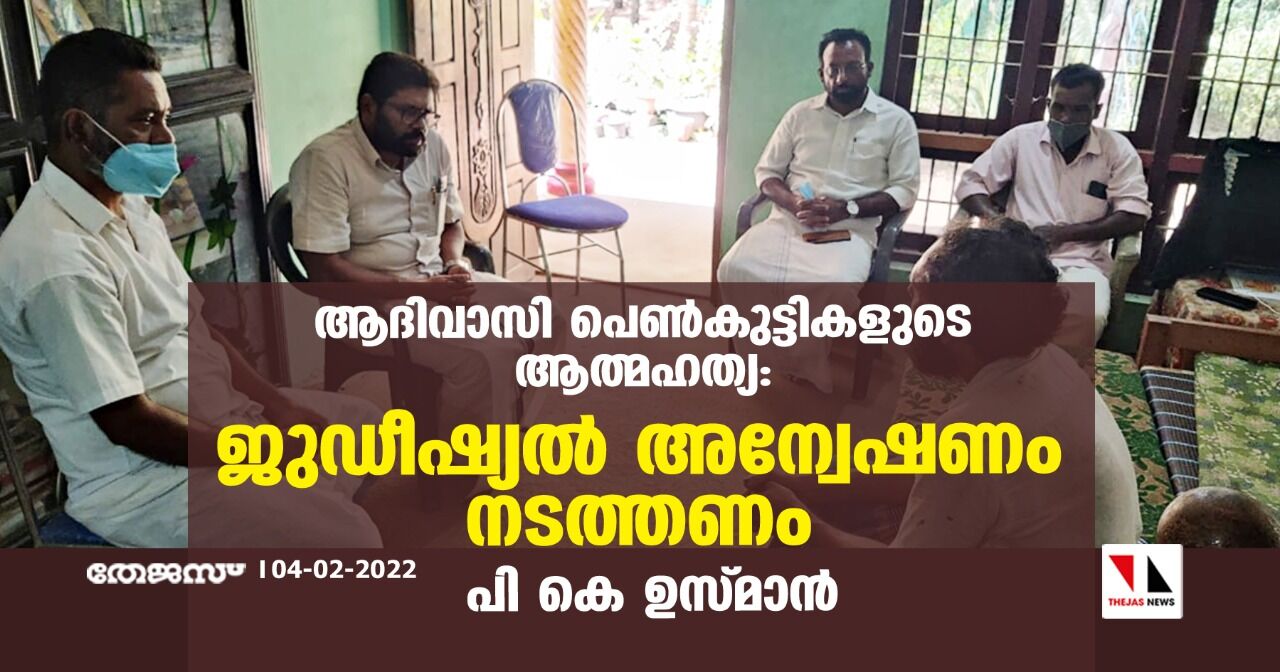 ആദിവാസി പെണ്കുട്ടികളുടെ ആത്മഹത്യ: ജുഡീഷ്യല് അന്വേഷണം നടത്തണമെന്ന് പി കെ ഉസ്മാന്