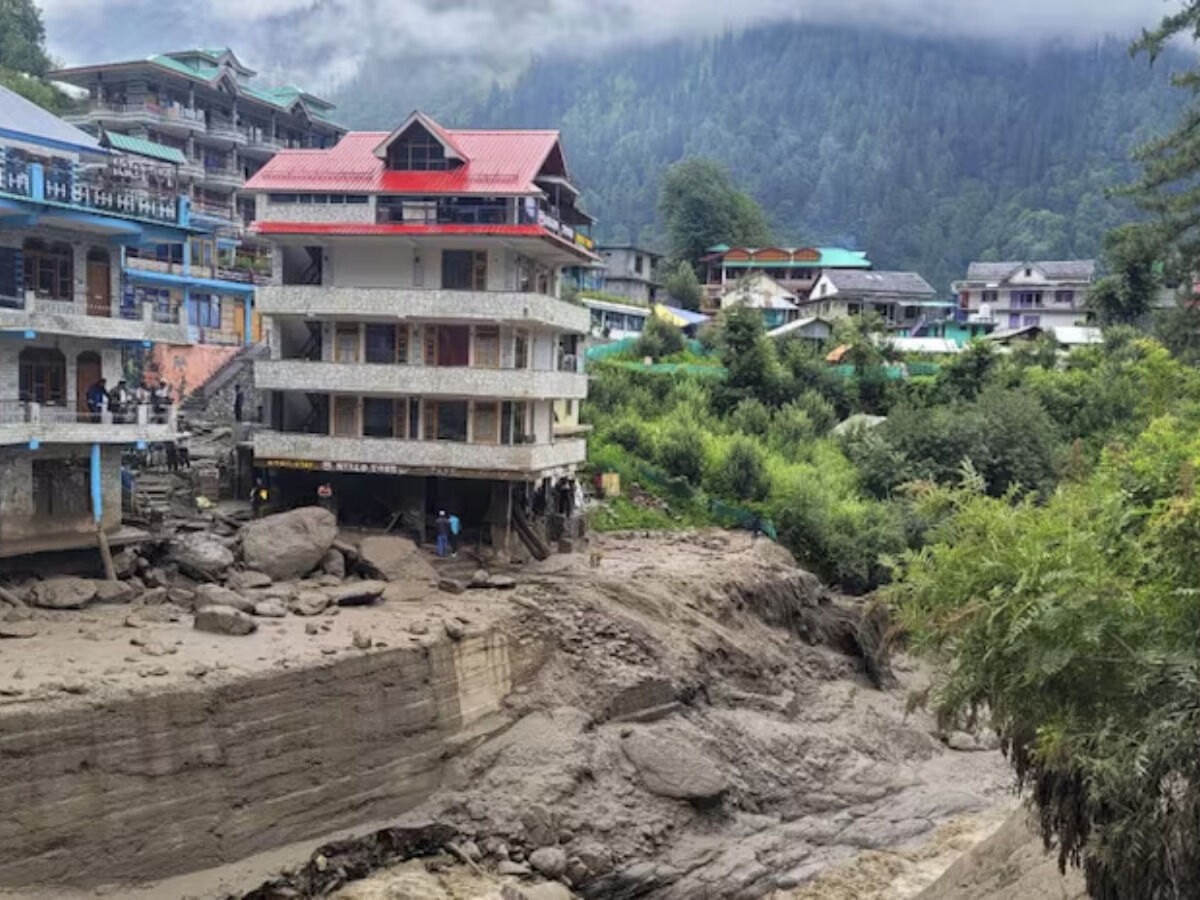 VIDEO | Himachal Pradesh: Car washed away, three missing as cloudbursts trigger flash floods in Kullu district.