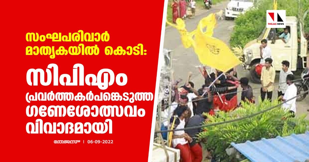 സംഘപരിവാര് മാതൃകയില് കൊടി: സിപിഎം പ്രവര്ത്തകര് പങ്കെടുത്ത ഗണേശോത്സവം വിവാദമായി
