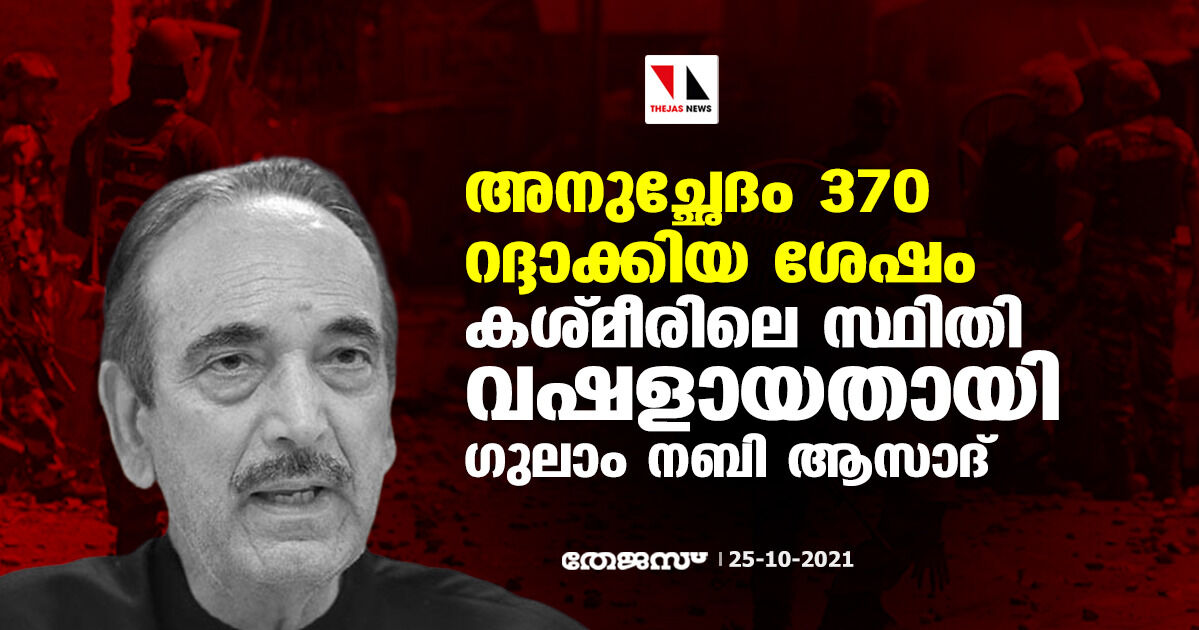 അനുച്ഛേദം 370 റദ്ദാക്കിയ ശേഷം കശ്മീരിലെ സ്ഥിതി വഷളായതായി ഗുലാം നബി ആസാദ്