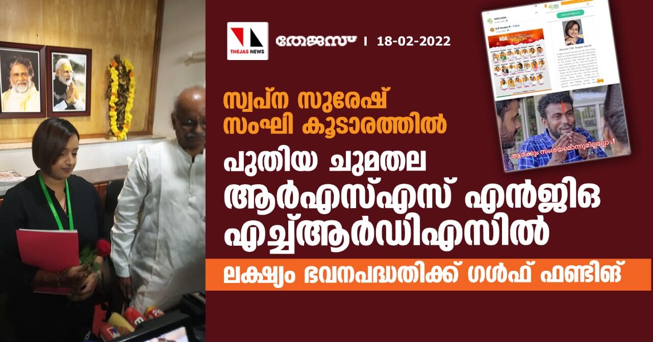 അട്ടപ്പാടിയിലുള്പ്പെടെ ഇന്ത്യയുടെ വിവിധ പ്രദേശങ്ങളില് പ്രവര്ത്തിച്ച് വരുന്ന ആര്എസ്എസ് എന്ജിഒ എച്ച്ആര്ഡിഎസാണ് ഇനി സ്വപ്ന സുരേഷിന്റെ തട്ടകം. സ്വര്ണക്കടത്ത് കേസിലെ കൂട്ടുപ്രതി സരിത്ത്്, ആര്എസ്എസ് നേതാവ് കെജി വേണുഗോപാല് എന്നിവരാണ് സ്വപ്നയെ സംഘപരിവാര് പക്ഷത്തെത്തിച്ചത്. സരിത്തിന്റെ ആര്എസ്എസ്-ബിജെപി ബന്ധം നേരത്തെ വ്യക്തമായതാണ്. എച്ച്ആര്ഡിഎസ് വൈസ് പ്രസിഡന്റായ നെയ്യാറ്റിന്കര സ്വദേശി വേണുഗോപാല് വിദ്യാര്ഥി കാലം മുതല് ആര്എസ്എസ് നേതാവായിരുന്നു.