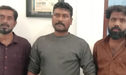 ഇടുക്കി: കാപ്പാ കേസ് പ്രതിയേയും കൂട്ടാളികളേയും വെടിയുണ്ടകളുമായി പോലീസ് പിടികൂടി. പുനലൂര് സ്വദേശികളായ രാജ് ഭവനില് രതീഷ് (44), പൂക്കുടിഞ്ഞിയില് വീട്ടില് എസ് കെ ജയിന് സാം (32), ആനന്ദ ഭവനില് രജിത്ത് കുമാര് എന്നിവരാണ് പിടിയിലായത്. കൊല്ലം ജില്ലയില്നിന്ന് പുറത്താക്കിയ കുറ്റവാളിയാണ് ജയിന്. ഒട്ടേറെ ക്രിമിനല് കേസുകളില് പ്രതിയായ ജയിന് പീരുമേട്ടില് കെടിഡിസിയുടെ ഉപയോഗിക്കാതെ കിടക്കുന്ന കെട്ടിടത്തില് രഹസ്യമായി താമസിച്ചു വരികയായിരുന്നു. കെട്ടിടത്തിന്റെ കെയര് ടേക്കര് പുനലൂര് മണിയാര് സ്വദേശി രതീഷാണ് ഇയാള്ക്ക് ഇവിടെ താമസിക്കാന് സൗകര്യം ഒരുക്കിക്കൊടുത്തത്. പിടിയിലായ പ്രതികളുടെ പക്കല്നിന്നും നാടന് തോക്കില് ഉപയോഗിക്കുന്ന മൂന്ന് തിരകളും കണ്ടെത്തി. മൂന്നുപേരെയും പീരുമേട് കോടതിയില് ഹാജരാക്കി റിമാന്ഡ് ചെയ്തു.