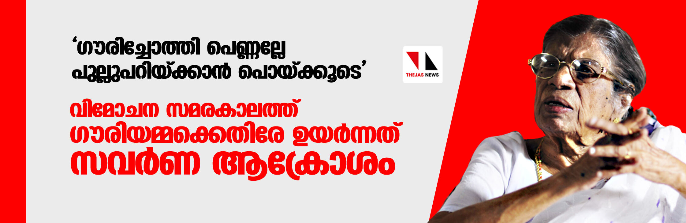 'ഗൗരിച്ചോത്തി പെണ്ണല്ലേ പുല്ലുപറിയ്ക്കാന് പൊയ്ക്കൂടെ'-വിമോചന സമരകാലത്ത് ഗൗരിയമ്മക്കെതിരേ ഉയര്ന്നത് സവര്ണ ആക്രോശം