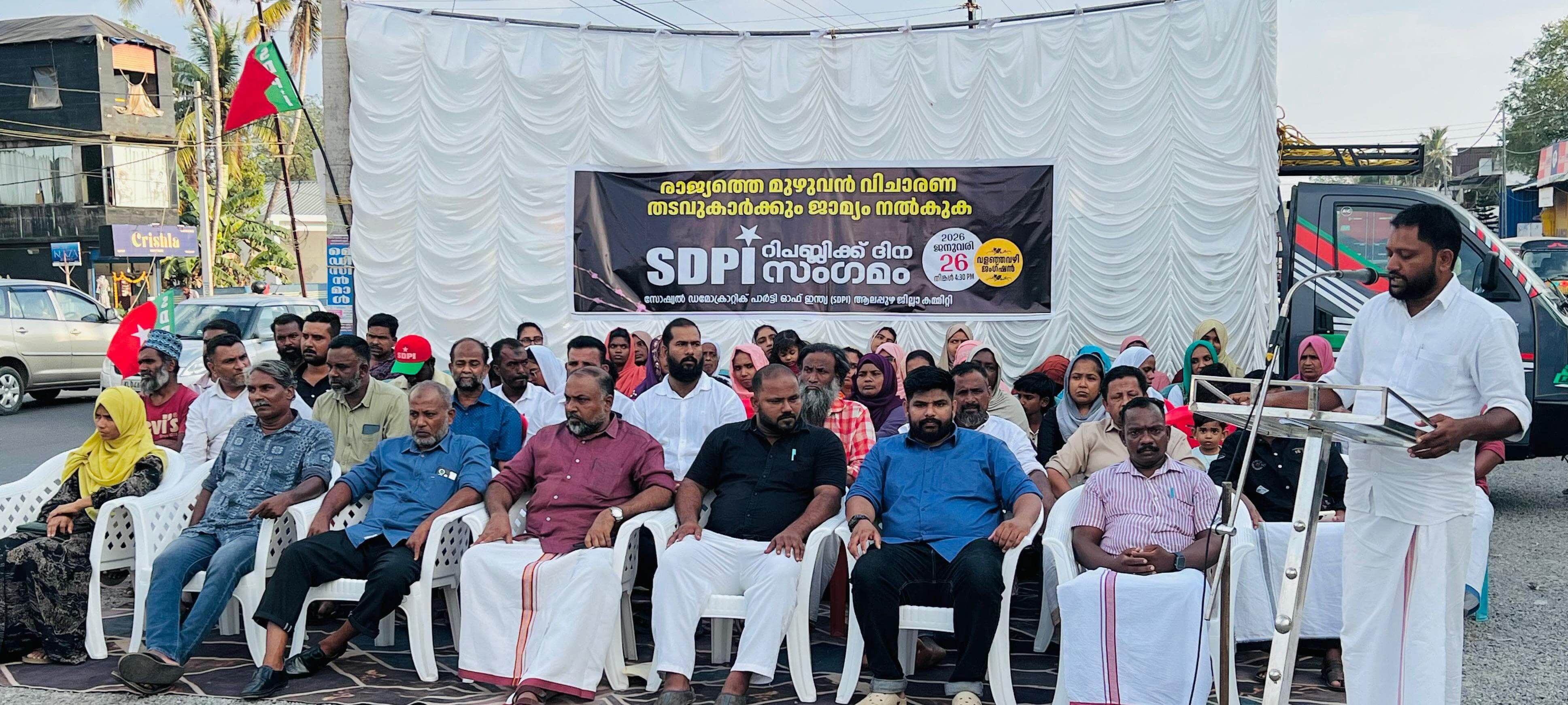 എസ്ഡിപിഐ ആലപ്പുഴ ജില്ലാ ജനറല് സെക്രട്ടറി നാസര് പഴയങ്ങാടി റിപബ്ലിക് ദിന സംഗമം ഉദ്ഘാടനം ചെയ്യുന്നു