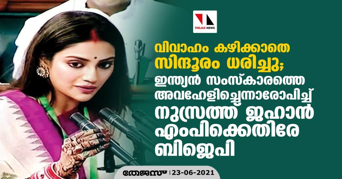 വിവാഹം കഴിക്കാതെ സിന്ദൂരം ധരിച്ചു; ഇന്ത്യന് സംസ്കാരത്തെ അവഹേളിച്ചെന്നാരോപിച്ച് നുസ്രത്ത് ജഹാന് എംപിക്കെതിരേ ബിജെപി