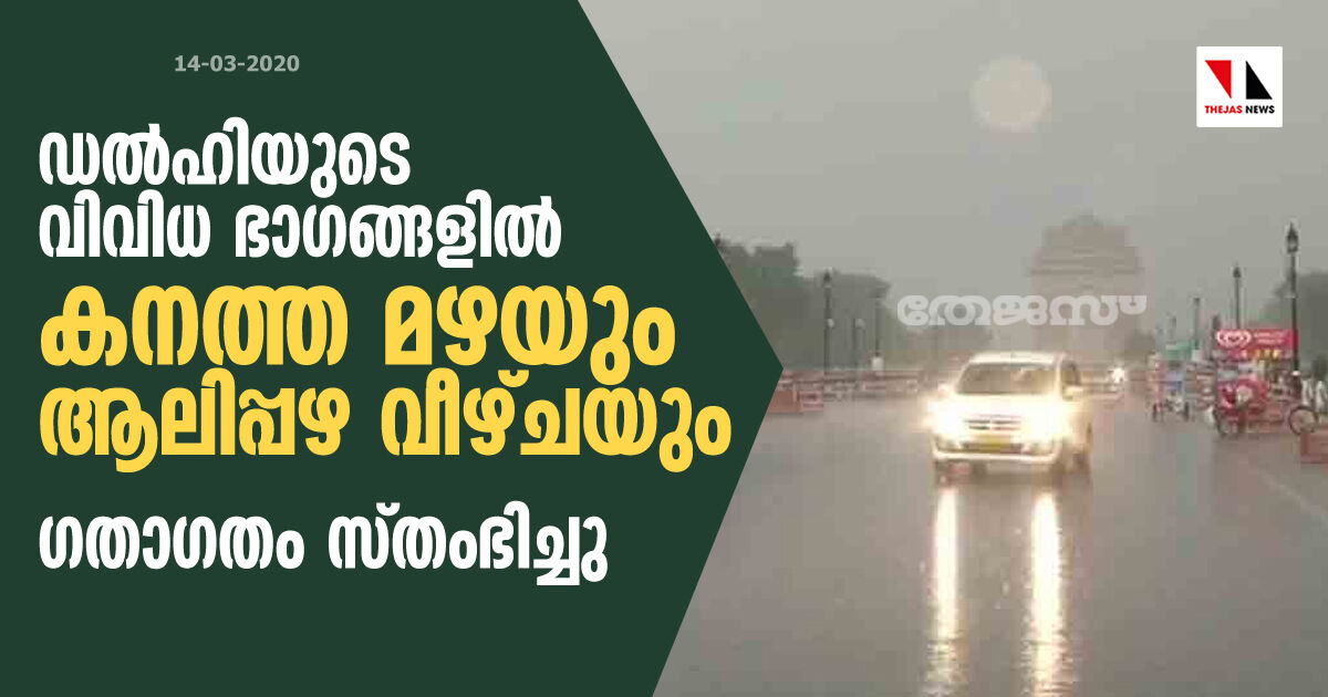 ഡല്ഹിയുടെ വിവിധഭാഗങ്ങളില് കനത്ത മഴയും ആലിപ്പഴ വര്ഷവും; ഗതാഗതം സ്തംഭിച്ചു
