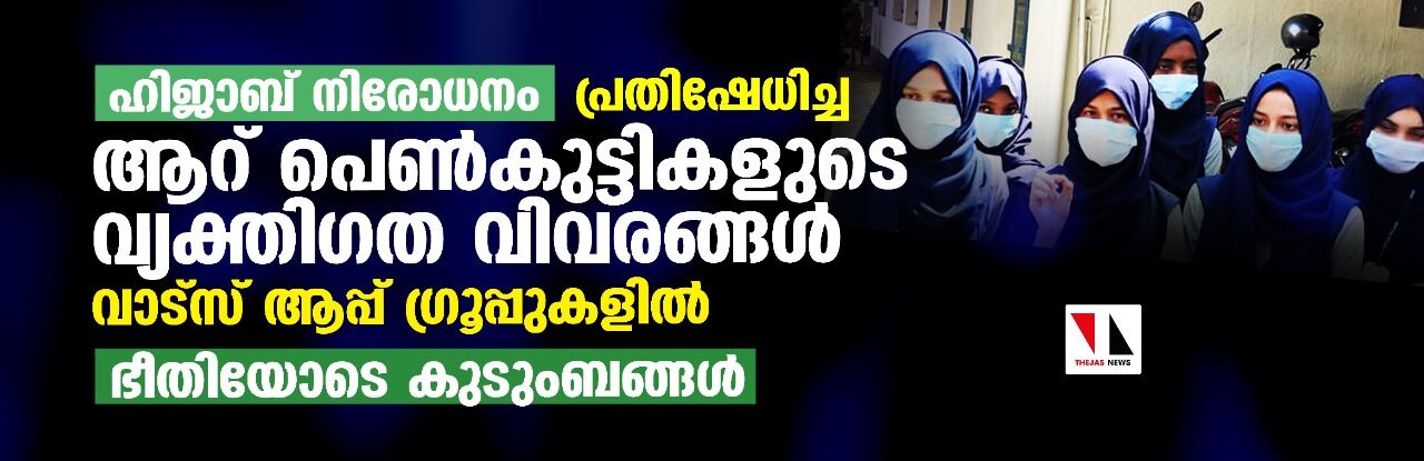 ഹിജാബ് നിരോധനം; പ്രതിഷേധിച്ച ആറ് പെണ്കുട്ടികളുടെ വ്യക്തിഗത വിവരങ്ങള് വാട്സ് ആപ്പ് ഗ്രൂപ്പുകളില്; ഭീതിയോടെ കുടുംബങ്ങള്