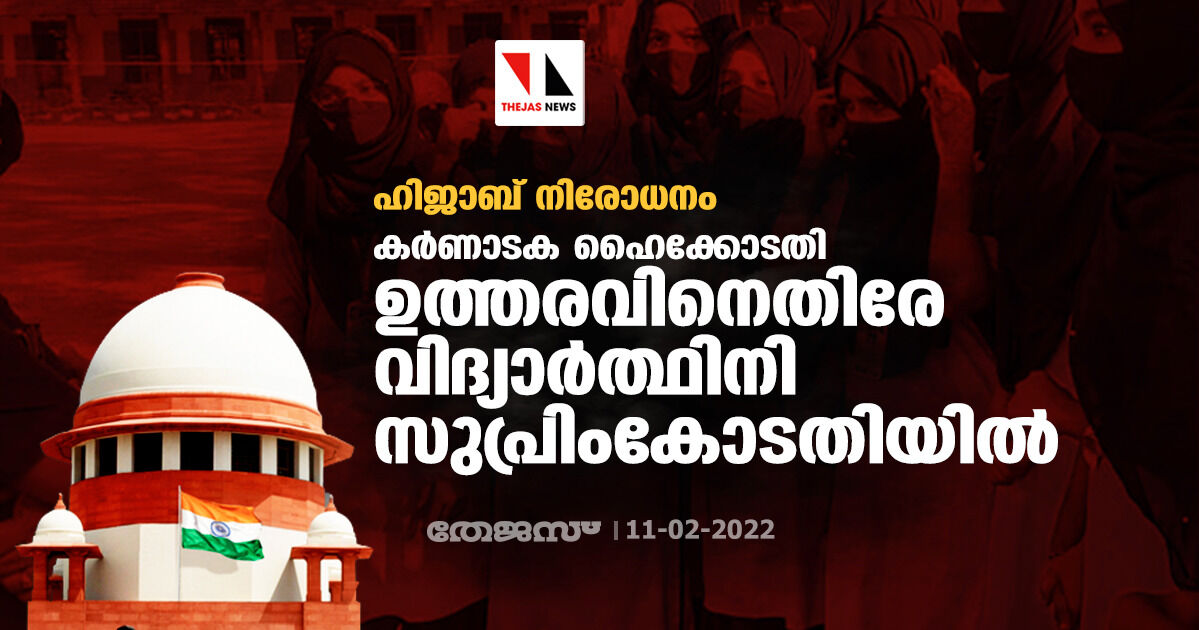 ഹിജാബ് നിരോധനം; കര്ണാടക ഹൈക്കോടതി ഉത്തരവിനെതിരേ വിദ്യാര്ത്ഥിനി സുപ്രിംകോടതിയില്