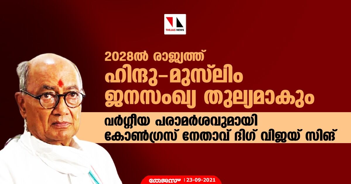 2028ല് രാജ്യത്ത് ഹിന്ദു-മുസ്ലിം ജനസംഖ്യ തുല്യമാകും; വര്ഗ്ഗീയ പരാമര്ശവുമായി കോണ്ഗ്രസ് നേതാവ് ദിഗ് വിജയ് സിങ്