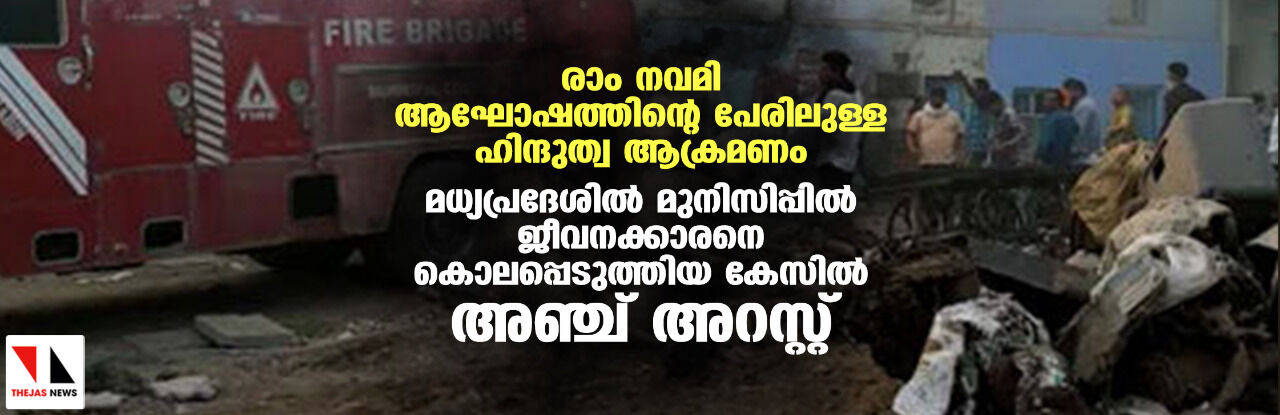 രാം നവമി ആഘോഷത്തിന്റെ പേരിലുള്ള ഹിന്ദുത്വ ആക്രമണം; മധ്യപ്രദേശില് മുനിസിപ്പില് ജീവനക്കാരനെ കൊലപ്പെടുത്തിയ കേസില് അഞ്ച് അറസ്റ്റ്
