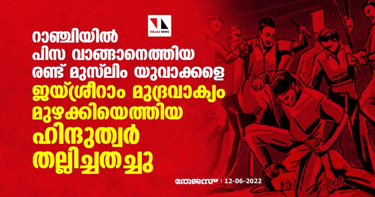 റാഞ്ചിയില് പിസ വാങ്ങാനെത്തിയ രണ്ട് മുസ് ലിം യുവാക്കളെ ജയ്ശ്രീറാം മുദ്രവാക്യം മുഴക്കിയെത്തിയ ഹിന്ദുത്വര് തല്ലിച്ചതച്ചു