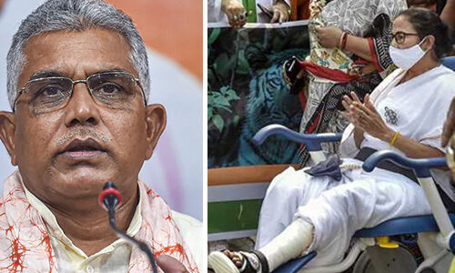 'പ്ലാസ്റ്റര് എടുത്തുമാറ്റി, ആ സ്ഥാനത്ത് ഒരു ബാന്റേജ് കെട്ടിയിട്ടുണ്ട്. ഇപ്പോള് മുഖ്യമന്ത്രി അവരുടെ കാലുകള് പ്രദര്ശിപ്പിക്കുകയാണ്. അവള് സാരി ധരിച്ചിട്ടുണ്ടെങ്കിലും കാലുകള് തുറന്നിരിക്കുകയാണ്. ആരും ഇതുപോലെ സാരി ധരിക്കുന്നത് ഞാന് കണ്ടിട്ടില്ല. കാലുകള് പ്രദര്ശിപ്പിക്കാന് ആഗ്രഹിക്കുന്നുവെങ്കില് എന്തിന് സാരി, ഒരു ബര്മുഡ ധരിക്കുക, അങ്ങനെ കാലുകള് എല്ലാവര്ക്കും കാണാമല്ലോ'- ദിലീപ് ഘോഷ് പ്രസംഗിച്ചു.