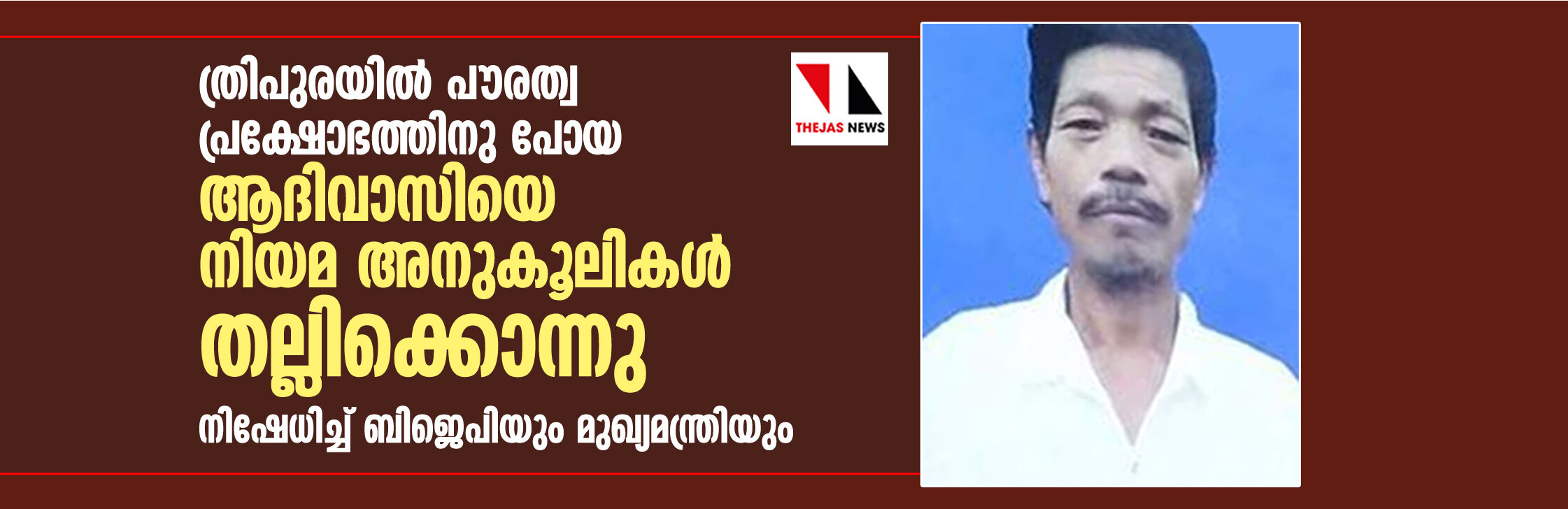 ത്രിപുരയില് പൗരത്വ പ്രക്ഷോഭത്തിനു പോയ ആദിവാസിയെ നിയമ അനുകൂലികള് തല്ലിക്കൊന്നു; നിഷേധിച്ച് ബിജെപിയും മുഖ്യമന്ത്രിയും