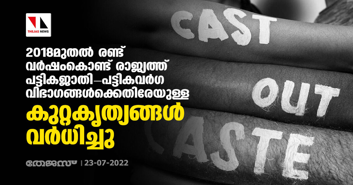 2018മുതല് രണ്ട് വര്ഷംകൊണ്ട് രാജ്യത്ത് പട്ടികജാതി- പട്ടികവര്ഗ വിഭാഗങ്ങള്ക്കെതിരേയുള്ള കുറ്റകൃത്യങ്ങള് വര്ധിച്ചു