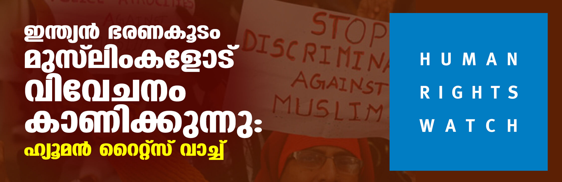 ഇന്ത്യന് ഭരണകൂടം മുസ്ലിംകളോട് വിവേചനം കാണിക്കുന്നു: ഹ്യൂമന് റൈറ്റ്സ് വാച്ച്