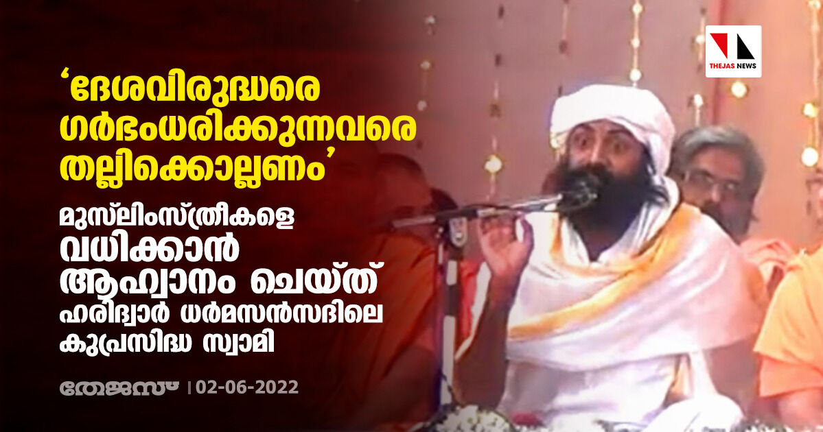 'ദേശവിരുദ്ധരെ ഗര്ഭംധരിക്കുന്നവരെ തല്ലിക്കൊല്ലണം': മുസ് ലിംസ്ത്രീകളെ വധിക്കാന് ആഹ്വാനം ചെയ്ത് ഹരിദ്വാര് ധര്മസന്സദിലെ കുപ്രസിദ്ധ സ്വാമി