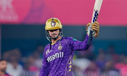 ടോസ് നഷ്ടപ്പെട്ട് ബാറ്റിങ്ങിനിറങ്ങിയ റിയാന് പരാഗിന്റെ നേതൃത്വത്തിലുള്ള രാജസ്ഥാന് റോയല്സ് സംഘം 20 ഓവറില് ഒന്പത് വിക്കറ്റ് നഷ്ടത്തില് 151 റണ്സെടുത്തു. വിക്കറ്റ് കീപ്പര് ധ്രുവ് ജുറേലാണ് (33) ടോപ് സ്കോറര്. കൊല്ക്കത്തയ്ക്കായി വരുണ് ചക്രവര്ത്തി, വൈഭവ് അറോറ, മോയിന് അലി, ഹര്ഷിത് റാണ എന്നിവര് രണ്ടുവീതം വിക്കറ്റുകള് നേടി. സഞ്ജു സാംസണാണ് (13) ആദ്യം പുറത്തായത്. ഇതുവരെ കളിച്ച രണ്ട് മത്സരങ്ങളും തോറ്റ രാജസ്ഥാന്, പോയിന്റ് പട്ടികയില് അവസാന സ്ഥാനത്താണ്.