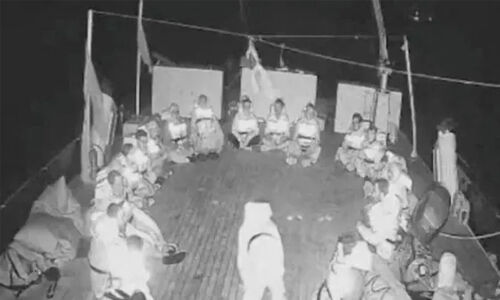 ബോട്ടുകള് യുദ്ധ മേഖലയിലേക്ക് അടുക്കുകയാണെന്നും ഉപരോധം ലംഘിക്കുകയാണെന്നും ഇസ്രായേലി ഫ്ളോട്ടില്ലയെ ഭീഷണിപ്പെടുത്തി. എന്നാല്, ബോട്ടുകളിലെ ആക്ടിവിസ്റ്റുകള് ഫലസ്തീനി സംഗീതമാണ് കേള്ക്കുന്നത്.