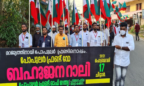 കര്ഷകര് മുതല് ജനപ്രതിനിധികള് വരെ, വിദ്യാര്ത്ഥികള് മുതല് പണ്ഡിതന്മാര് വരെ ആര്എസ്എസുകാരും കോര്പറേറ്റുകളുമല്ലാത്ത എല്ലാവരും ഭരണകൂട വേട്ടക്ക് വിധേയമാകുന്ന ഈ കെട്ട കാലത്ത്, വര്ഗീയ ഫാസിസ്റ്റുകളില് നിന്നും രാജ്യത്തെ രക്ഷിക്കാന് എല്ലാ വിഭാഗം ജനങ്ങളും യോജിക്കുകയും ഒരുമിച്ച് മുന്നേറുകയും ചെയ്യണമെന്ന് സമ്മേളനം ആഹ്വാനം ചെയ്തു. പോപുലര് ഫ്രണ്ട് പത്തനംതിട്ട ജില്ലാ പ്രസിഡന്റ് എസ് സജീവ് പഴകുളം അധ്യക്ഷത വഹിച്ച സമ്മേളനത്തില് വി എം ഫഹദ് വിഷയാവതരണം നടത്തി. വെല്ഫെയര് പാര്ട്ടി ജില്ലാ പ്രസിഡന്റ് ജോഷി ജോസഫ്, എസ്ഡിപിഐ ജില്ലാ പ്രസിഡന്റ് അന്സാരി ഏനാത്ത്, കാംപസ് ഫ്രണ്ട് സംസ്ഥാന വൈസ് പ്രസിഡന്റ് മുഹമ്മദ് ഷാന്, എന്ഡബ്ല്യുഎഫ് ജില്ലാ പ്രസിഡന്റ് അനീഷ ഷാജി, എസ്ഡിടിയു ജില്ലാ പ്രസിഡന്റ് അഷ്റഫ് ചുങ്കപ്പാറ, വിമന്സ് ഇന്ത്യാ മൂവ്മെന്റ് ജില്ലാ പ്രസിഡന്റ് എസ് ഷൈലജ, പോപുലര് ഫ്രണ്ട് ജില്ലാ സെക്രട്ടറി സാദിഖ് അഹമ്മദ്, ചിറ്റാര് ഏരിയാ പ്രസിഡന്റ് മുഹമ്മദ് ഫാസില് സംസാരിച്ചു. രാജ്യതലസ്ഥാനത്ത് പൊരുതുന്ന കര്ഷകര്ക്ക് സമ്മേളനം ഐക്യദാര്ഢ്യം പ്രഖ്യാപിച്ചു. സമരത്തില് നിരവധി കര്ഷക സഹോദരങ്ങളാണ് ജീവന് ബലിനല്കിയത്. അവരോടുള്ള ആദര സൂചകമായി ഈ പൊതുസമ്മേളനം മൗനമാചരിച്ച് ഐക്യദാര്ഢ്യം പ്രഖ്യാപിച്ചു. സമ്മേളനത്തിന് മുന്നോടിയായി ചിറ്റാര് ടൗണില് കേഡറ്റുകള് അണിനിരന്ന യൂണിറ്റി മാര്ച്ചും ബഹുജന റാലിയും നടന്നു.
