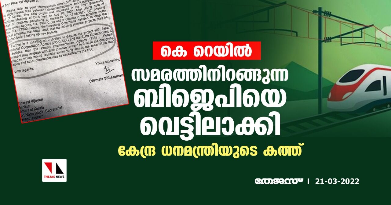 കെ റെയില്; സമരത്തിനിറങ്ങുന്ന ബിജെപിയെ വെട്ടിലാക്കി കേന്ദ്ര ധനമന്ത്രിയുടെ കത്ത്