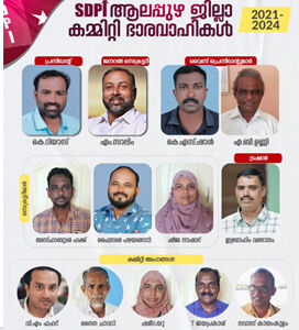 കെ.റിയാസ് എസ്ഡിപിഐ ആലപ്പുഴ ജില്ലാ പ്രസിഡന്റ്, എം. സാലിം ജനറല് സെക്രട്ടറി
