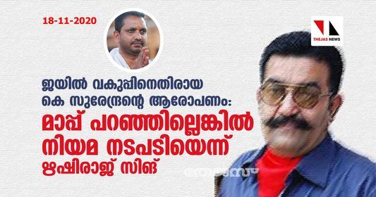 ജയില് വകുപ്പിനെതിരായ കെ സുരേന്ദ്രന്റെ ആരോപണം: മാപ്പ് പറഞ്ഞില്ലെങ്കില് നിയമ നടപടിയെന്ന് ഋഷിരാജ് സിങ്