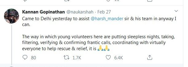 ഡല്ഹിയില് സഹായവുമായി കണ്ണന് ഗോപിനാഥനും