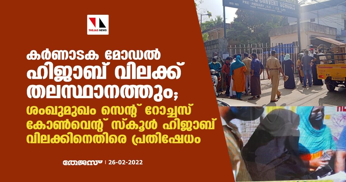 കര്ണാടക മോഡല് ഹിജാബ് വിലക്ക് തലസ്ഥാനത്തും; ശംഖുമുഖം സെന്റ് റോച്ചസ് സ്കൂള് ഹിജാബ് വിലക്കിനെതിരെ രക്ഷിതാക്കളുടെ പ്രതിഷേധം