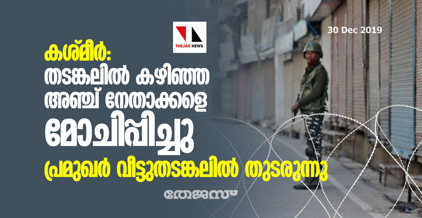 കശ്മീര്: തടവില് കഴിഞ്ഞ അഞ്ച് നേതാക്കളെ മോചിപ്പിച്ചു; പ്രമുഖര് വീട്ടുതടങ്കലില് തുടരുന്നു