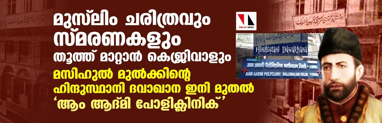 മുസ് ലിംചരിത്രവും സ്മരണകളും തൂത്ത് മാറ്റാന് കെജ്രിവാളും; മസിഹുല് മുല്ക്കിന്റെ ഹിന്ദുസ്ഥാനി ദവാഖാന ഇനി മുതല് 'ആം ആദ്മി പോളിക്ലിനിക്'