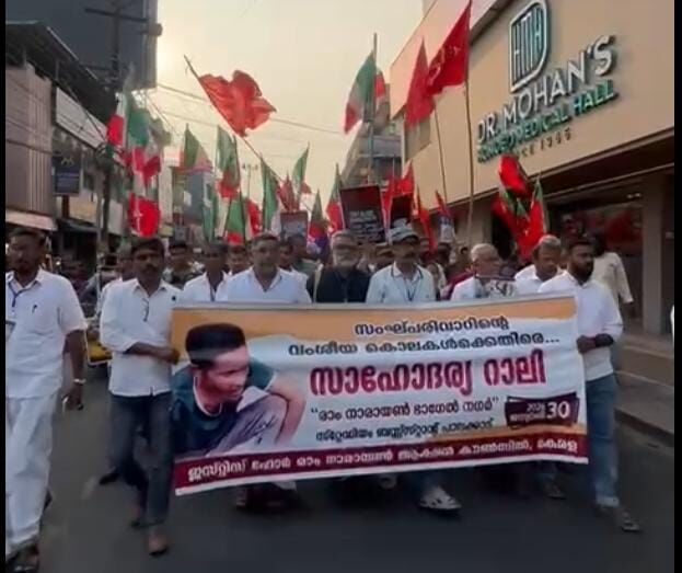 സംഘ്പരിവാറിന്റെ വംശീയ കൊലകള്ക്കെതിരെ ജസ്റ്റിസ് ഫോര് രാം നാരായണ് ആക്ഷന് കൗണ്സില് പാലക്കാട്ട് സംഘടിപ്പിച്ച സാഹോദര്യ റാലി