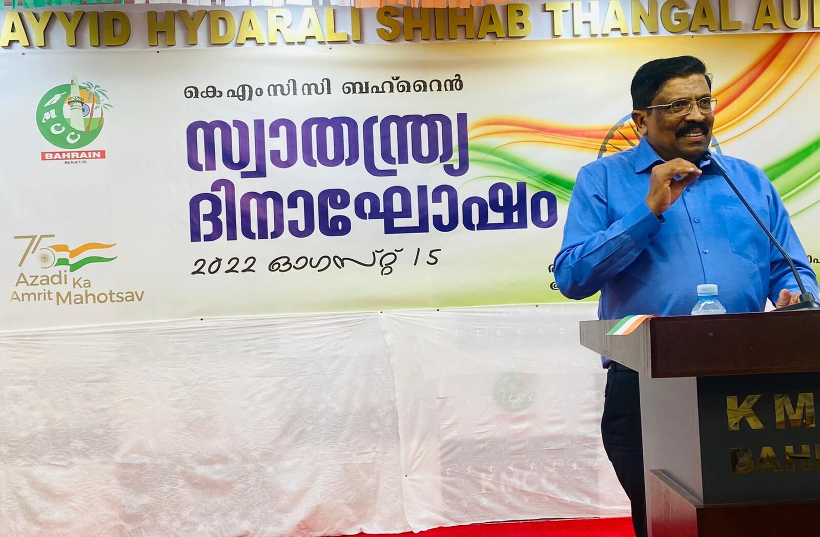 കെഎംസിസി ബഹ്റെയ്ന് ആക്ടിങ് പ്രസിഡന്റ് ഗഫൂര് കൈപ്പമംഗലം അധ്യക്ഷനായിരുന്നു. സെക്രട്ടറി റഫീഖ് തോട്ടക്കര സ്വാതന്ത്ര്യദിന സന്ദേശം അവതരിപ്പിച്ചു. ആക്ടിങ് ജനറല് സെക്രട്ടറി ഒ കെ കാസിം സ്വാഗതവും സെക്രട്ടറി അസ്ലം വടകര നന്ദിയും പറഞ്ഞു.