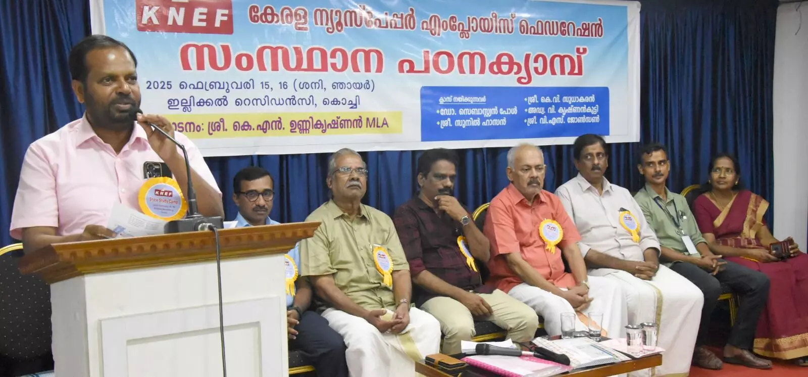 എറണാകുളം പത്തടിപ്പാലം ഇല്ലിക്കല് റെസിഡന്സിയില് നടന്ന യോഗത്തില് കെഎന്ഇഎഫ് സംസ്ഥാന പ്രസിഡന്റ് വി എസ് ജോണ്സണ് അധ്യക്ഷനായി. മുന് എംപി ഡോ. സെബാസ്റ്റ്യന് പോള്, എന്ജെപിയു സംസ്ഥാന പ്രസിഡന്റ് കെ എന് ലതാനാഥന്, കെഎന്ഇഇഫ് സംസ്ഥാന ജന. സെക്രട്ടറി ജയിസണ് മാത്യു, വൈസ് പ്രസിഡന്റുമാരായ ആര് രാധാകൃഷ്ണന്, ജയകുമാര് തിരുന്നക്കര, ട്രഷറര് എം ജമാല് ഫൈറൂസ്, സെക്രട്ടറി ആര്. മല്ലിക, ജോ. സെക്രട്ടറി വിജി മോഹന്, ജില്ലാ പ്രസിഡന്റ് ഗിരീഷ്കുമാര്, സെക്രട്ടറി എം ടി വിനോദ്കുമാര് എന്നിവര് പങ്കെടുത്തു.
