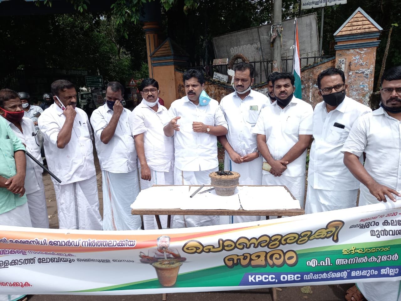 മലപ്പുറം: ആഭരണ തൊഴിലാളി ക്ഷേമനിധി ബോര്ഡ് പിരിച്ചുവിട്ടതിനെതിരെയും, മുഖ്യമന്ത്രിയും ആഭരണ നിര്മ്മാണ ലോബിയും തമ്മിലുള്ള രഹസ്യ കൂട്ടുകെട്ട് സി.ബി.ഐ അന്വേഷിക്കണമെന്ന് ആവശ്യപ്പെട്ടും കെപിസിസി ഒ.ബിസി ഡിപാര്ട്ട്മെന്റ് മലപ്പുറം ജില്ലാ കമ്മറ്റി കലക്ടറേറ്റിനു മുമ്പില് പൊന്നുരുക്കി സമരം നടത്തി.