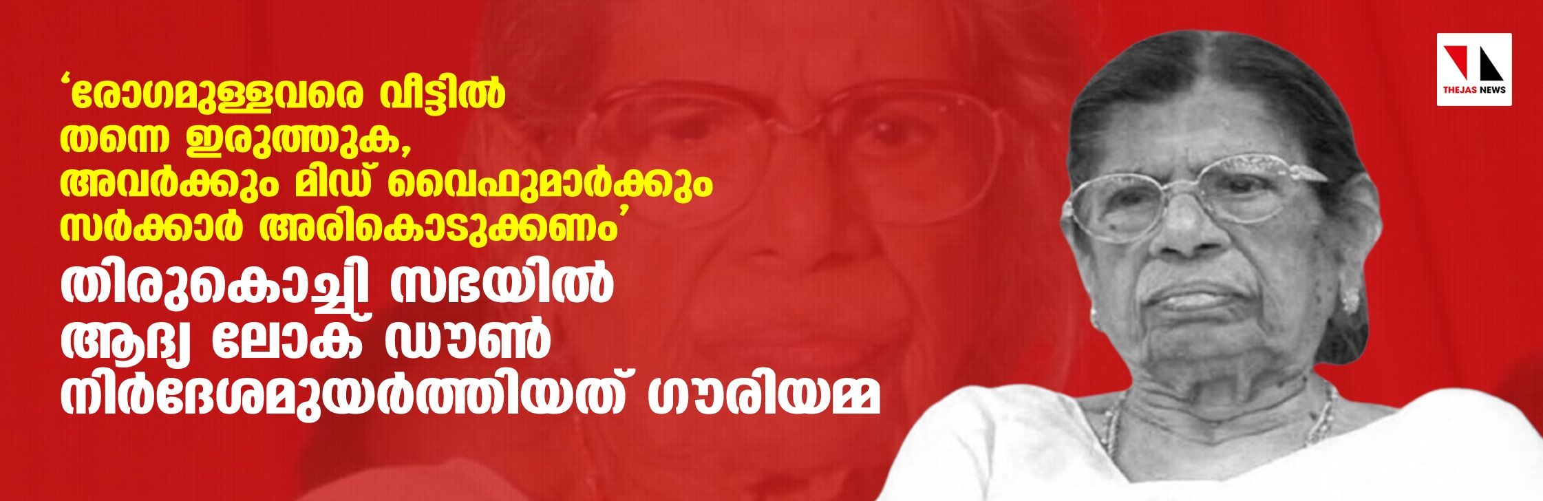 'രോഗമുള്ളവരെ വീട്ടില് തന്നെ ഇരുത്തുക, അവര്ക്കും മിഡ് വൈഫുമാര്ക്കും സര്ക്കാര് അരികൊടുക്കണം'; തിരു-കൊച്ചി സഭയില് ആദ്യ ലോക് ഡൗണ് നിര്ദ്ദേശമുയര്ത്തിയത് ഗൗരിയമ്മ