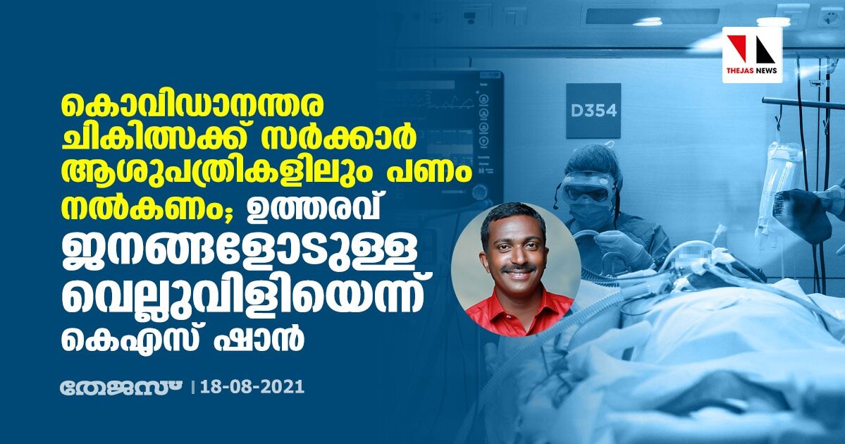കൊവിഡാനന്തര ചികിത്സക്ക് സര്ക്കാര് ആശുപത്രികളിലും പണം നല്കണം: ഉത്തരവ് ജനങ്ങളോടുള്ള വെല്ലുവിളിയെന്ന് കെഎസ് ഷാന്