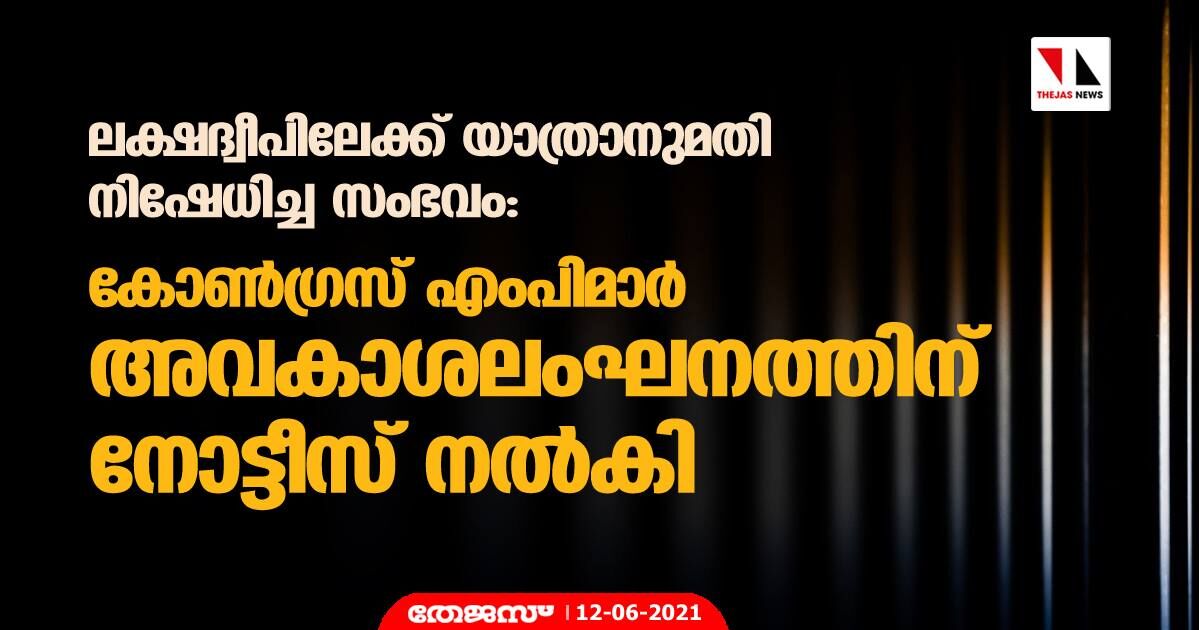 ലക്ഷദ്വീപിലേക്ക് യാത്രാനുമതി നിഷേധിച്ച സംഭവം: കോണ്ഗ്രസ് എംപിമാര് അവകാശലംഘനത്തിന് നോട്ടീസ് നല്കി