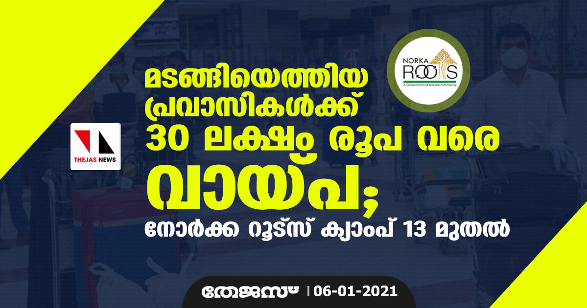 മടങ്ങിയെത്തിയ പ്രവാസികള്ക്ക് 30 ലക്ഷം രൂപ വരെ വായ്പ; നോര്ക്ക റൂട്സ് ക്യാംപ് 13 മുതല്
