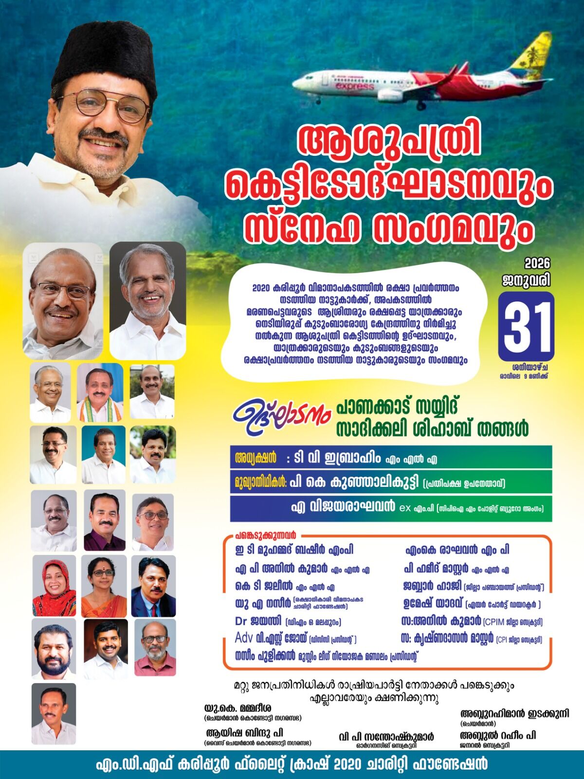 കരിപ്പൂര്: 2020 ആഗസ്റ്റ് ഏഴിലെ കരിപ്പൂര് വിമാന അപകടവേളയില് സ്വന്തം ജീവന് പണയപ്പെടുത്തിയും കോവിഡ് ഭീതി മറികടന്നും രക്ഷാപ്രവര്ത്തനത്തിന് ഇറങ്ങിത്തിരിച്ച നാട്ടുകാര്ക്കായി ഒരു സ്നേഹോപഹാരം. അപകടത്തില് മരണപ്പെട്ടവരുടെ ആശ്രിതരും രക്ഷപ്പെട്ട യാത്രക്കാരും ചേര്ന്ന് നിര്മ്മിച്ചു നല്കുന്ന ആശുപത്രി കെട്ടിടത്തിന്റെ ഉദ്ഘാടനവും, യാത്രക്കാരും കുടുംബങ്ങളും രക്ഷാപ്രവര്ത്തകരും വീണ്ടും ഒത്തുചേരുന്ന സ്നേഹസംഗമവും. MDF കരിപ്പൂര് ഫ്ലൈറ്റ് ക്രാഷ് 2020 ചാരിറ്റി ഫൗണ്ടേഷന് ആണ് സംഘടിപ്പിക്കുന്നത്.
