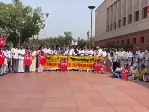 രാജ്യത്തെ എല്പിജി പ്രതിസന്ധി; പാര്ലമെന്റിനു പുറത്ത് പ്രതിപക്ഷ പ്രതിഷേധം