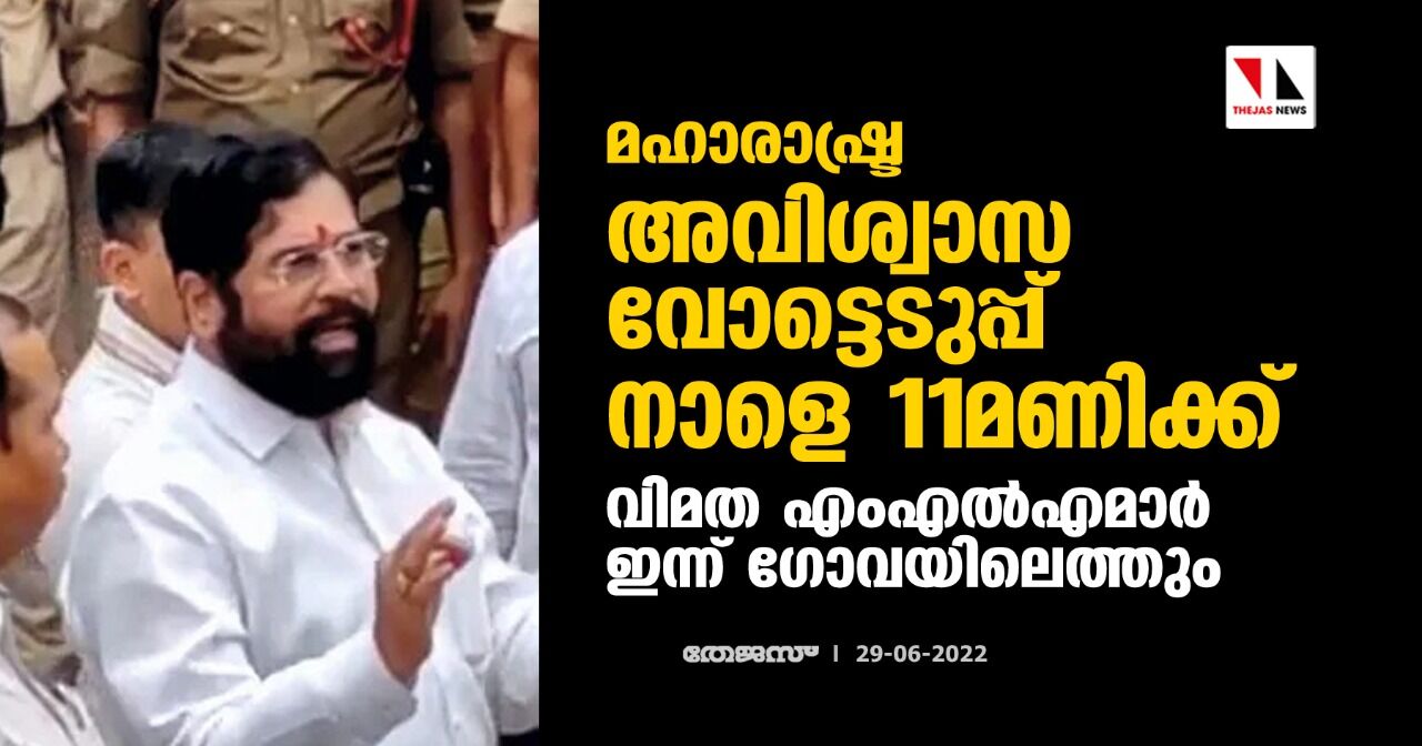 മഹാരാഷ്ട്ര അവിശ്വാസവോട്ടെടുപ്പ് നാളെ 11മണിക്ക്: വിമത എംഎല്എമാര് ഇന്ന് ഗോവയിലെത്തും