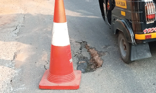 റോഡില് അപകട ഭീഷണിയായി ഗര്ത്തം രൂപപ്പെടുന്നു