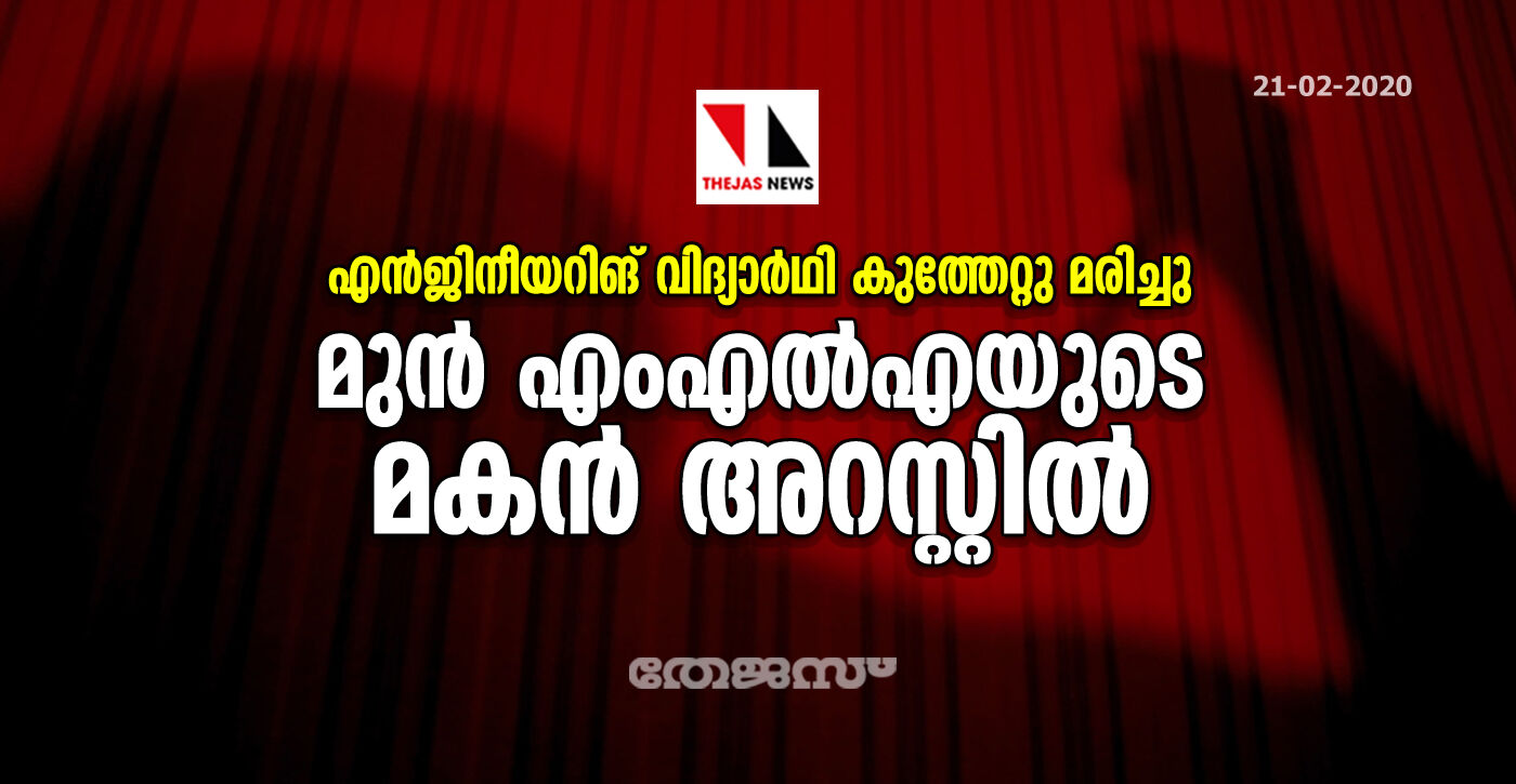 എന്ജിനീയറിങ് വിദ്യാര്ഥി കുത്തേറ്റു മരിച്ചു; മുന് എംഎല്എയുടെ മകന് അറസ്റ്റില്