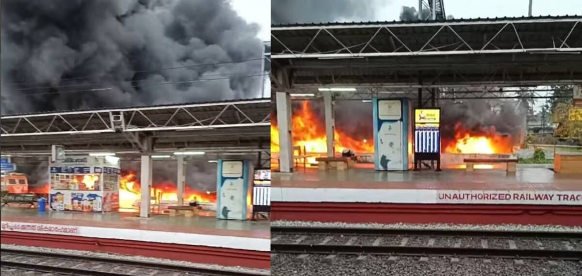 തൃശൂര് റെയില്വേ സ്റ്റേഷന് പാര്ക്കിങ്ങില് വന് തീപിടിത്തം; നൂറിലേറെ ബൈക്കുകള് കത്തിനശിച്ചു