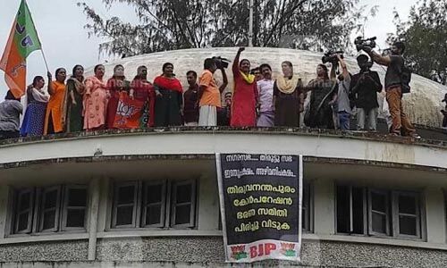 കോര്പറേഷന് ഓഫിസിന് മുകളില്ക്കയറി ബിജെപി കൗണ്സിലര്മാര്, സംഘര്ഷം; പോലിസിന് നേരേ കസേരയേറ്
