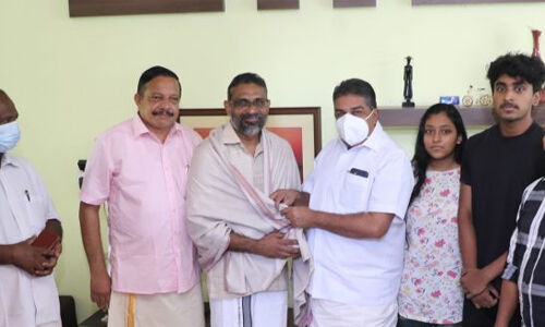 എഴുത്തിന്റെ വഴികളേക്കുറിച്ചും ചരിത്രപരമായ ബന്ധത്തെക്കുറിച്ചുമെല്ലാം ബെന്യാമിന് മന്ത്രിയുമായി സംസാരിച്ചു. ജില്ലാ പഞ്ചായത്ത് ആരോഗ്യകാര്യ സ്റ്റാന്റിംഗ് കമ്മിറ്റി ചെയര്മാന് ആര്.അജയകുമാര്, ജീവരാജ്, സായ്റാം പുഷ്പന്, അനൂപ് അനിരുദ്ധന്, ആനന്ദന്, അയിനി സന്തോഷ്, രാജേഷ്, ബിജി ദേവ് തുടങ്ങിയവര് പങ്കെടുത്തു.